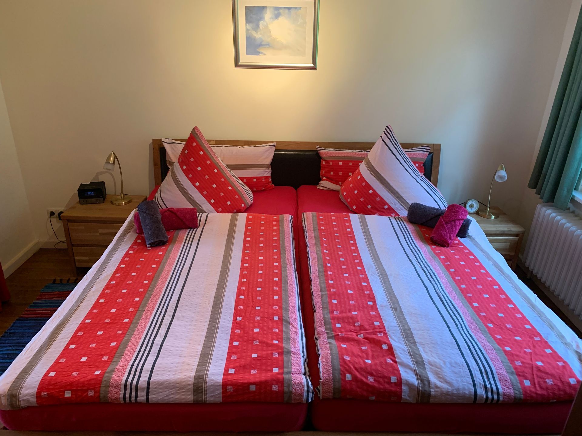 Ausserdem stehen Ihnen ein 80 x 80cm Kissen und ein 40 x 80cm Kissen zur Verfügung sowie Bettdecken in Übergröße 155 x 220cm.
