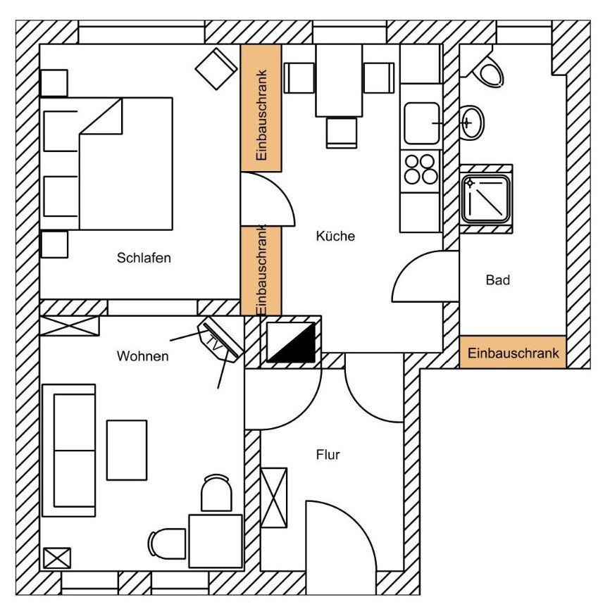 Von der Küche aus gelangen Sie wieder in den Flur des Eingangsbereiches oder in das Badezimmer.